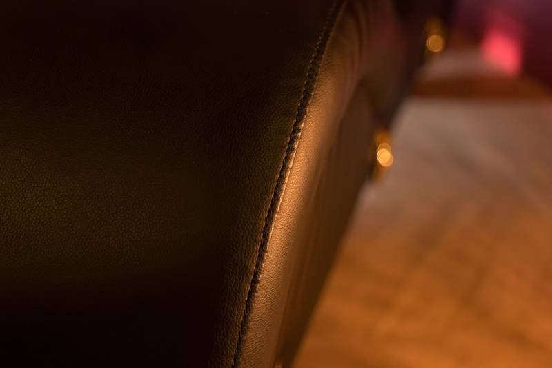 Derrière une paroi élégamment intégrée à la décoration, une atmosphère feutrée se dévoile, baignée d'une lumière tamisée et de matériaux nobles.